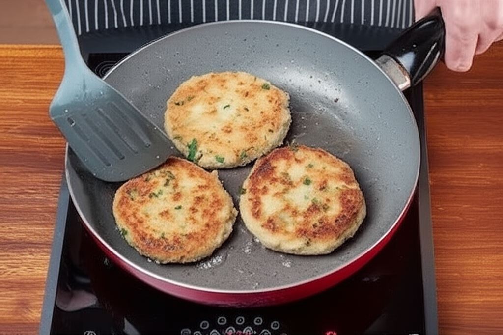 Kształtuj okrągłe kotleciki, obtaczaj w bułce tartej i smaż na rozgrzanym tłuszczu.
