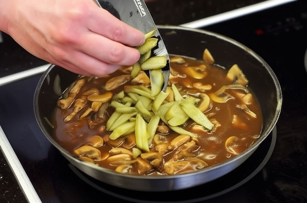 Przygotowanie jest niezwykle proste – wystarczy pokroić mięso w cienkie paseczki, zamarynować je w musztardzie, a następnie podsmażyć z cebulą i pieczarkami. Dodanie Sosu do pieczeni z grzybami Knorr nada potrawie głębi smaku, a ogórki wprowadzą przyjemny, kwaskowy akcent. Całość dusi się, aż sos lekko zgęstnieje, tworząc idealną konsystencję.