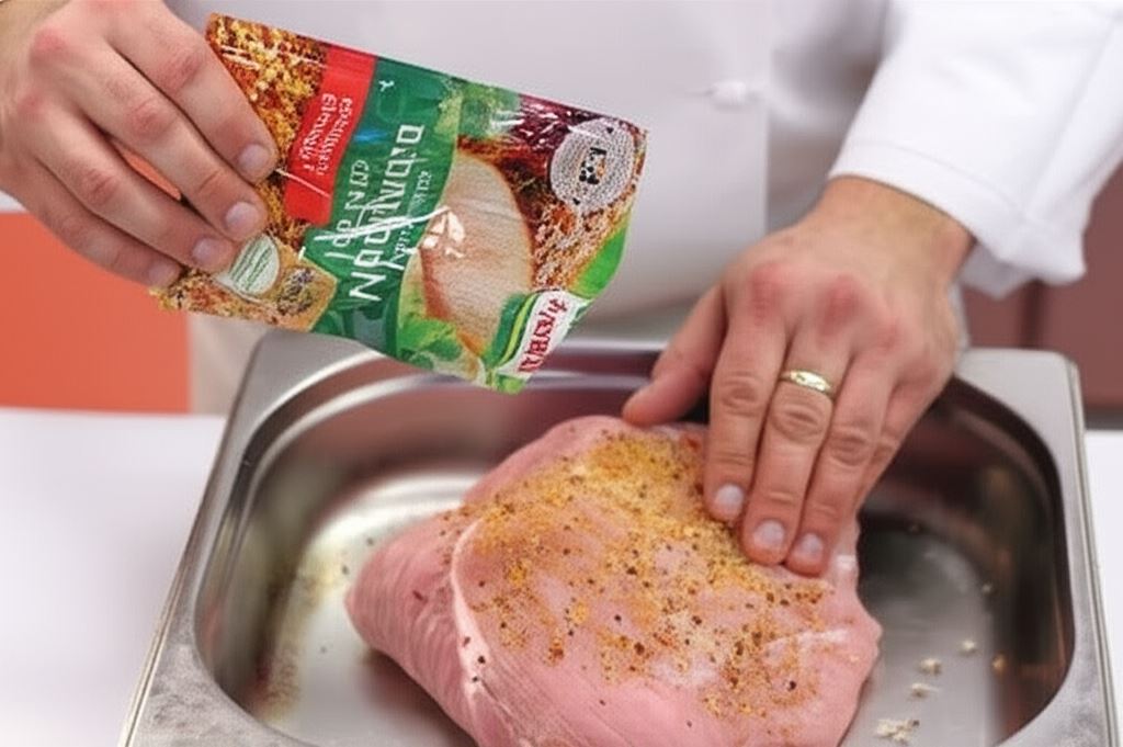 Natrzyj mięso przyprawą Knorr, a w utworzone szczeliny powciskaj całe goździki.