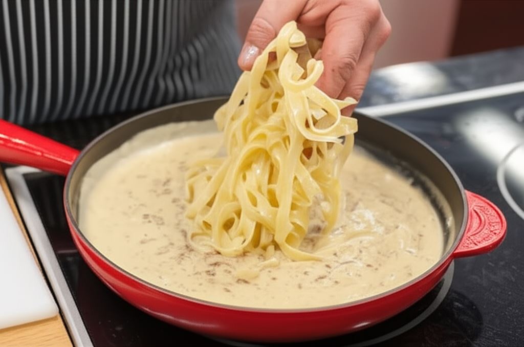 Niebieski ser, taki jak lazur czy gorgonzola, zawdzięcza swój charakterystyczny smak i wygląd specjalnym szczepom pleśni. W połączeniu z kremową śmietaną tworzy wyjątkowo aksamitny sos, który doskonale przylega do makaronu. Pamiętaj, aby nie płukać ugotowanego makaronu – dzięki temu sos lepiej się z nim połączy!