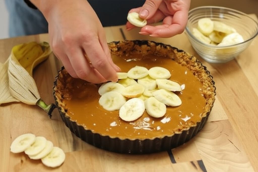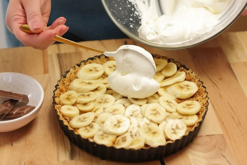 Przygotowanie rozpoczyna się od stworzenia kruchej podstawy z pokruszonych herbatników, masła i cynamonu, którą należy krótko zapiec. Na schłodzony spód trafia podgrzana masa kajmakowa, a na nią układamy warstwę świeżych bananów. Całość wieńczy puszysta bita śmietana z dodatkiem cukru pudru i ziaren wanilii, oprószona delikatnie startą czekoladą.