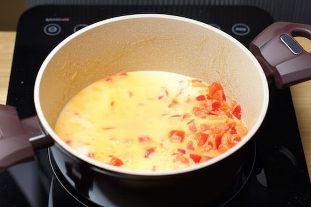Kiedy warzywa uzyskają delikatnie złoty kolor, zalej wszystko wodą, wsyp Fix Knorr i dodaj śmietanę. Jarzyny starannie połącz z płynami i gotuj na małym ogniu pod pokrywką około 15 minut.