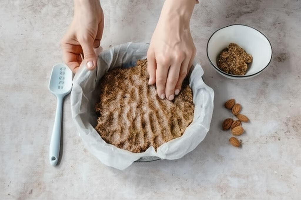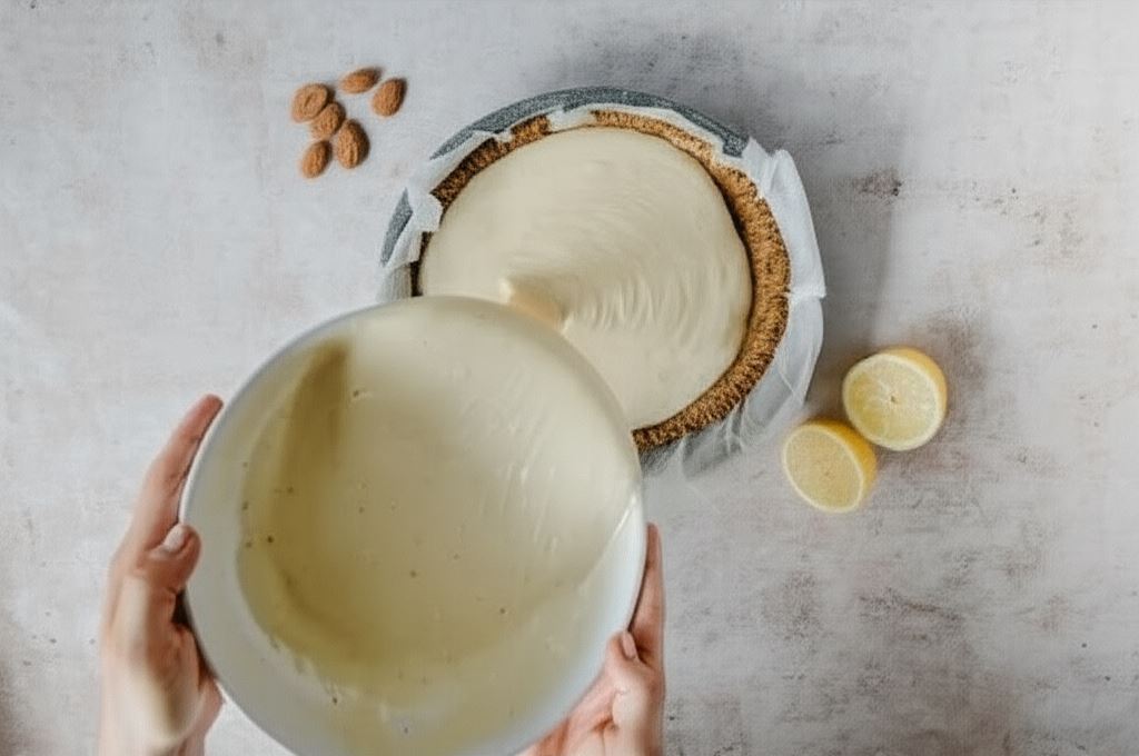 Mieszaninę wylewamy na spód z migdałów.