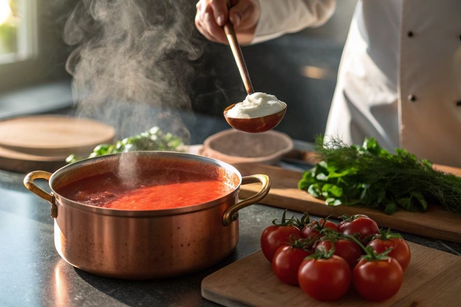 Podstawą wyjątkowej zupy krem pomidorowej jest odpowiedni dobór pomidorów. Świeże pomidory malinowe lub bawole serca oferują najgłębszy smak, szczególnie gdy są dojrzałe i zbierane sezonowo. Alternatywnie, pomidory z puszki San Marzano zapewniają intensywny smak przez cały rok dzięki temu, że są zbierane w optymalnym momencie dojrzałości.