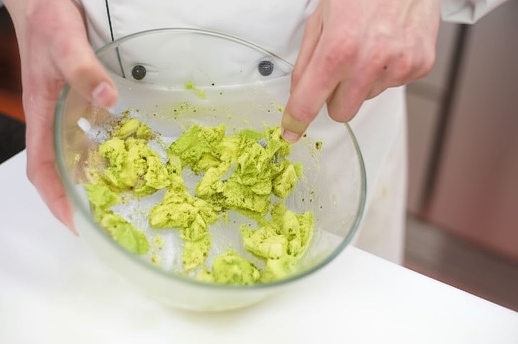 Obierz dojrzałe awokado, usuń pestkę, pokrój i dodaj do wcześniej przygotowanego sosu. Starannie wymieszaj ręką, lub widelcem aby awokado się rozpadło i utworzyła się pasta.