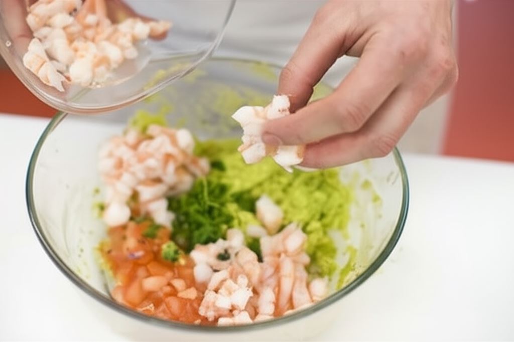 Podstawą pasty do tortilli jest awokado, które samo w sobie ma dość neutralny smak, dlatego doskonale komponuje się z wyrazistymi dodatkami. W połączeniu z sosem czosnkowym i kolendrą tworzy pastę przypominającą meksykańskie guacamole, ale wzbogaconą o morski akcent w postaci krewetek. Najlepiej wybierać krewetki koktajlowe, które są już wstępnie obrobione i wymagają jedynie krótkiego podgrzania.