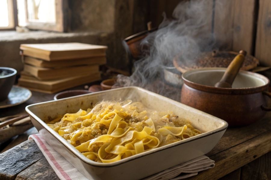 Łazanki to jedna z najstarszych potraw w polskiej tradycji kulinarnej, sięgająca czasów dynastii Jagiellonów. Pierwsze wzmianki o tej potrawie pochodzą z XVI wieku, kiedy to królowa Bona Sforza wprowadziła do polskiej kuchni wiele innowacji kulinarnych. Łazanki stanowiły wówczas danie dworskie, które z czasem trafiło pod strzechy i stało się nieodłącznym elementem kuchni chłopskiej. Charakterystyczny makaron w formie małych, kwadratowych lub prostokątnych płatków ciasta, przygotowywany był początkowo wyłącznie na specjalne okazje. W XIX wieku łazanki zyskały status potrawy codziennej, szczególnie popularnej w okresie zimowym, gdy kapusta kiszona stanowiła podstawowe źródło witamin.