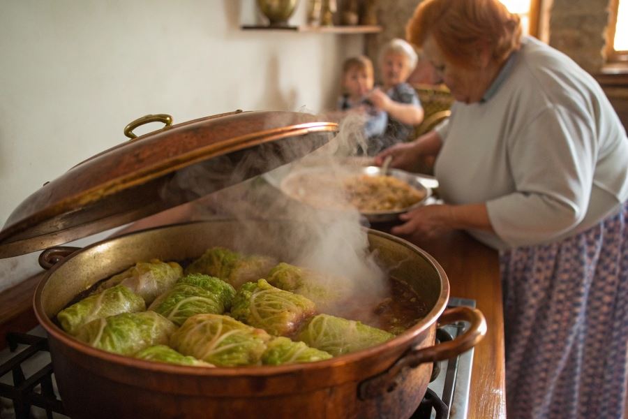 Gołąbki przygotowane w kotle charakteryzują się wyjątkowym smakiem, ponieważ długie gotowanie pozwala na pełne przeniknięcie aromatów między farszem, liśćmi kapusty i sosem.