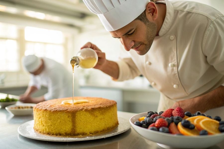 Pędzelek cukierniczy zapewnia precyzyjną kontrolę nad ilością syropu i jest idealny do delikatnych biszkoptów, które łatwo nasiąkają.