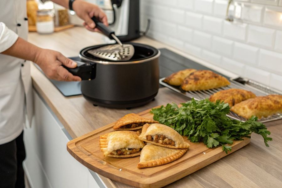 Czebureki przygotowane bez oleju charakteryzują się nieco inną teksturą – są mniej tłuste, ale równie chrupiące z zewnątrz, a soczyste w środku. Ich smak jest czystszy, pozwalający wyraźniej wyczuć aromaty przypraw i nadzienia.