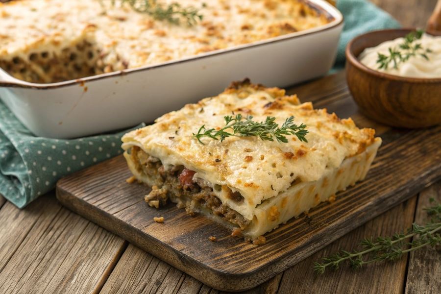 • Pastitsio z jagnięciną – zastąp wołowinę mieloną jagnięciną dla bardziej wyrazistego smaku
