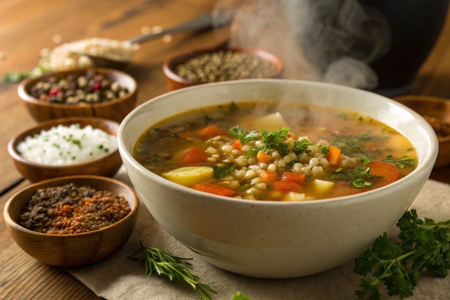 Sekret idealnego krupniku tkwi w umiejętnym balansowaniu przypraw. Zbyt duża ilość ziela angielskiego może zdominować delikatny smak kaszy, podczas gdy odpowiednia ilość majeranku podkreśla jej naturalną słodycz.