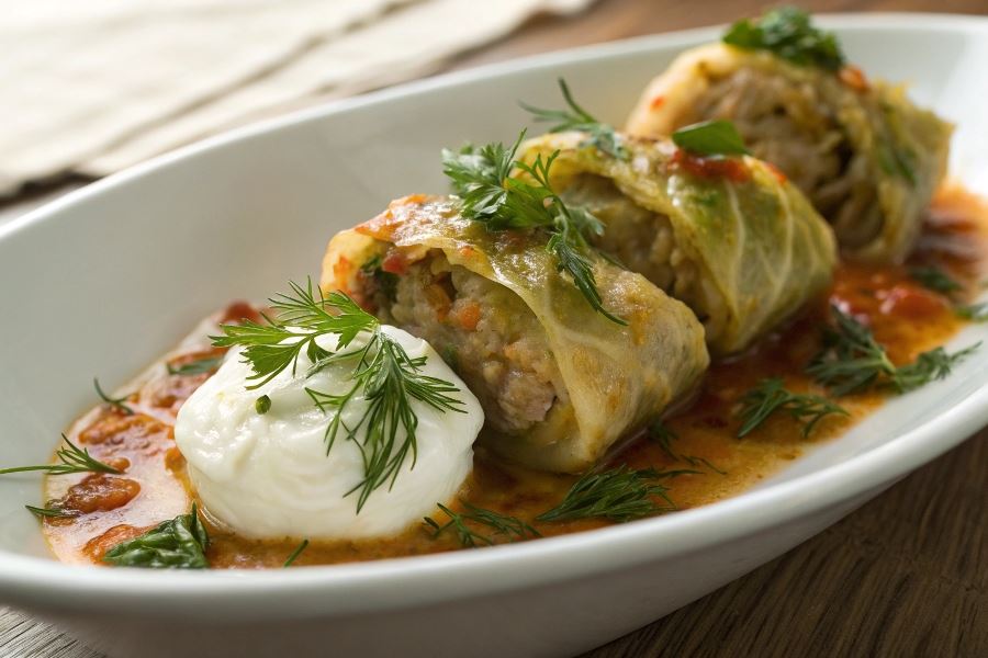 Warto zadbać o teksturalne zróżnicowanie dodatków – chrupiące pieczywo, kremowy sos i delikatne gołąbki tworzą wielowymiarowe doznanie kulinarne.