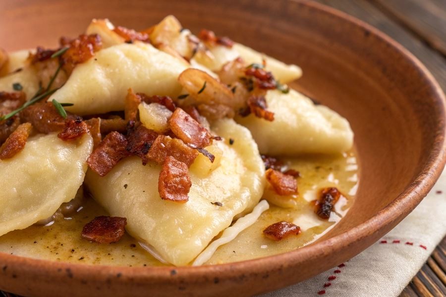 Równie popularnym sposobem podania jest połączenie kopytek z masłem i bułką tartą. Ten prosty dodatek przygotowuje się przez zrumienienie bułki tartej na maśle do uzyskania złocistego koloru. Taki dodatek idealnie podkreśla delikatny smak kopytek, nie dominując ich, a jednocześnie dodając przyjemnej tekstury i aromatu świeżo prażonego masła.