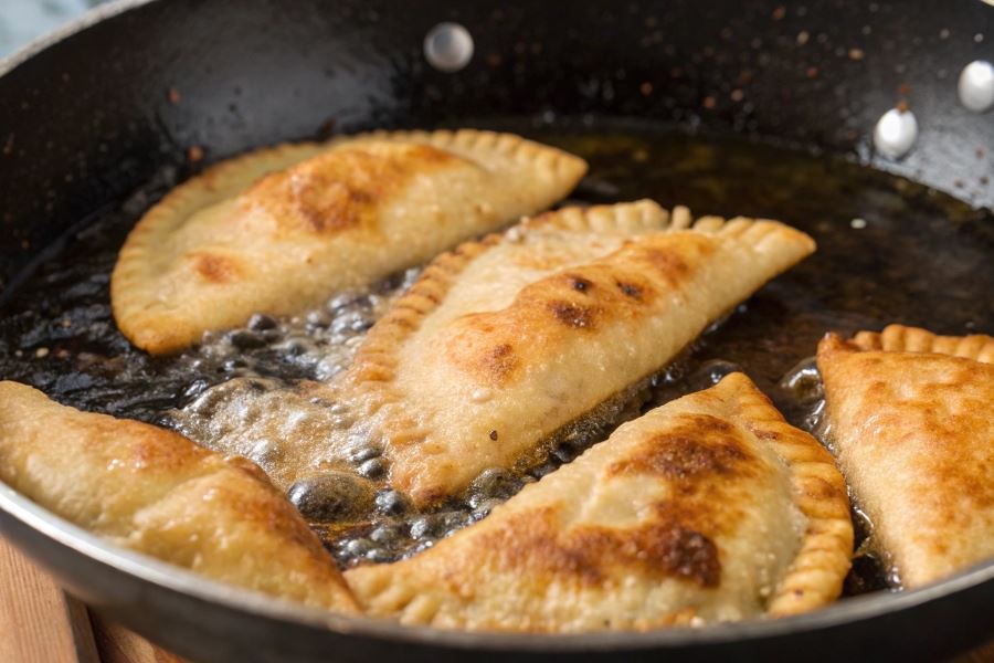 Pamiętaj, aby nadzienie całkowicie wystygło przed napełnianiem czebureki. Gorące nadzienie może spowodować, że ciasto stanie się wilgotne i trudne do zamknięcia.