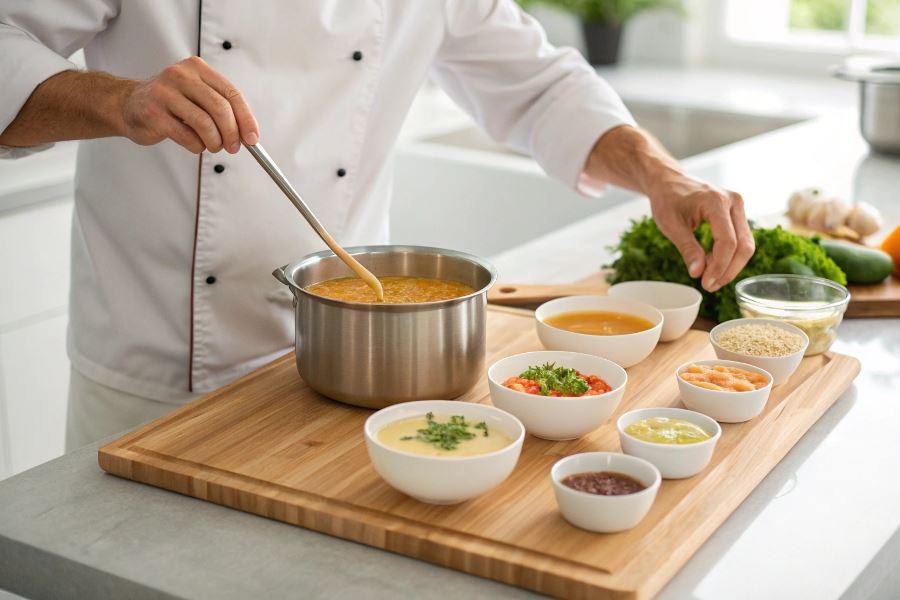Efekt smakowy i tekstura zupy różnią się znacząco w zależności od wybranego zagęstnika. Mąka nadaje zupom bardziej jednolitą, gładką konsystencję i neutralny smak, podczas gdy śmietana wprowadza kremowość i delikatny mleczny posmak. Najlepsze rezultaty można osiągnąć łącząc obie metody – najpierw zagęszczając zupę niewielką ilością mąki, a następnie dodając śmietanę dla uzyskania aksamitnej tekstury.