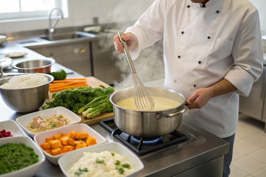 W naszej firmie Multi Cook specjalizujemy się w zupach kremowych, które wymagają jedynie podgrzania – wszystkie techniki zagęszczania zostały już profesjonalnie zastosowane w naszych produktach, zapewniając idealną konsystencję bez dodatkowego wysiłku.
