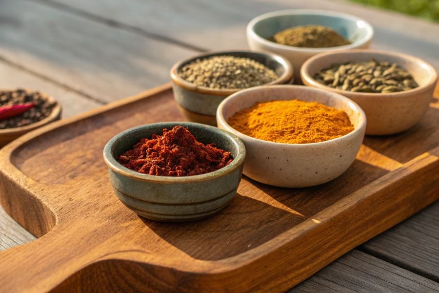 • Natka pietruszki – dodaje delikatny, ziołowy aromat i balansuje intensywność pozostałych przypraw