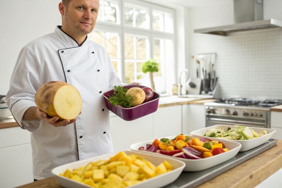 - Mrożone kostki brukwi sous-vide gotowe do szybkiego podgrzania