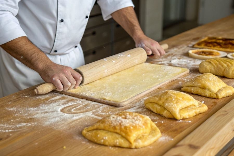 Ciasto francuskie wyróżnia się wyjątkową warstwową strukturą, która po upieczeniu tworzy charakterystyczne, kruche płatki. Sekret jego niepowtarzalnej tekstury tkwi w wielokrotnym składaniu i rozwałkowywaniu ciasta z warstwami masła, co tworzy setki cienkich warstw.
