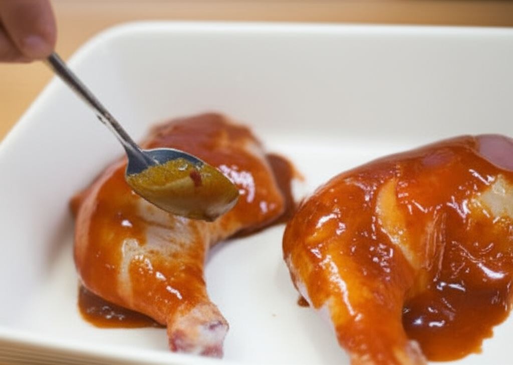 Przygotowaną marynatą posmaruj udka. Zamarynowane udka pozostaw na minimum 30 minut w chłodnym miejscu.