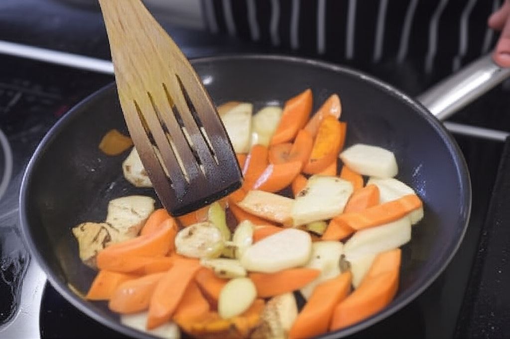 Warzywa włoszczyzny umyj, obierz i posiekaj, zrumień na gorącym oleju, następnie przełóż do naczynia żaroodpornego. Na warzywach rozmieść udka kaczki.