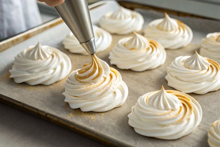• Za pomocą rękawa cukierniczego lub łyżki formuj bezy na blasze