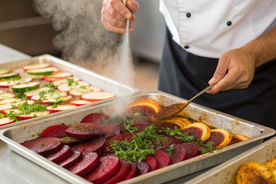 Buraczki podawane na ciepło zyskują wyjątkowy charakter dzięki odpowiednim przyprawom. Kwaskowość octu jabłkowego doskonale równoważy naturalną słodycz buraków, tworząc harmonijny smak. Dodanie szczypty cynamonu wprowadza subtelną głębię, która idealnie komponuje się z karmelizowanymi nutami podgrzanych buraków.