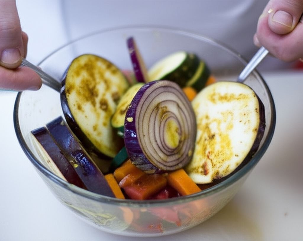 Dodaj warzywa do marynaty. Ostrożnie wymieszaj całość i odstaw na 30 minut.