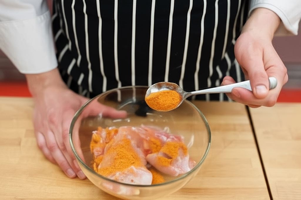 Podudzia posyp przyprawą Knorr, potem zrumień w garnku na gorącej oliwie.