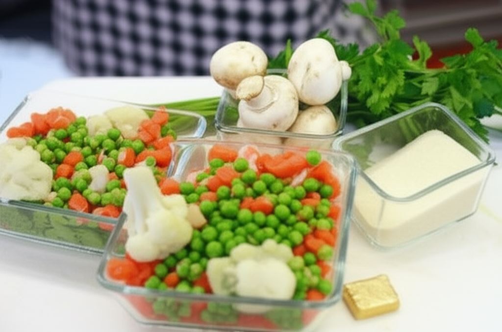 Warzywne tymbaliki to klasyczna przekąska, która zachwyca nie tylko smakiem, ale i efektownym wyglądem. Delikatna galaretka skrywająca kolorowe warzywa i jajka tworzy kompozycję, która z pewnością przyciągnie wzrok gości. Przygotowanie rozpoczyna się od aromatycznego bulionu na bazie kostek Rosołu z kury Knorr, który stanowi doskonałą bazę smakową dla całej potrawy.