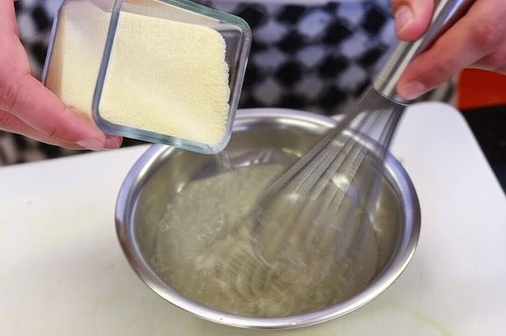 Dodaj namoczoną żelatynę i mieszaj, aż do momentu, gdy się całkowicie rozpuści.