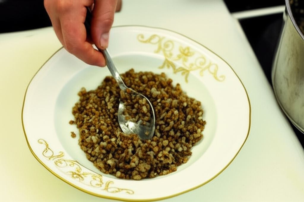Ta wersja gulaszu różni się od tradycyjnej węgierskiej potrawy. Sekret tkwi w połączeniu z kaszą gryczaną, której charakterystyczny, intensywny smak doskonale komponuje się z aromatycznym sosem. To właśnie na niej układamy soczyste mięso, tworząc harmonijne połączenie smaków.