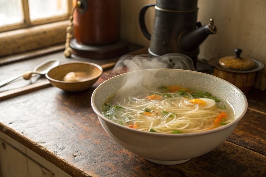 Zupa nylonowa to tradycyjne polskie danie, które zyskało popularność w trudnych czasach powojennych, szczególnie w latach 40. i 50. XX wieku. Nazwa tej zupy ma niezwykle ciekawe pochodzenie – wywodzi się od przezroczystości i delikatności wywaru, który przypominał cienkie pończochy nylonowe, będące wówczas symbolem luksusu i nowoczesności. Niektóre źródła wskazują również, że nazwa mogła nawiązywać do faktu, że zupa była tak rzadka i przejrzysta, że „można było przez nią czytać gazetę” – podobnie jak przez nylonowe pończochy.