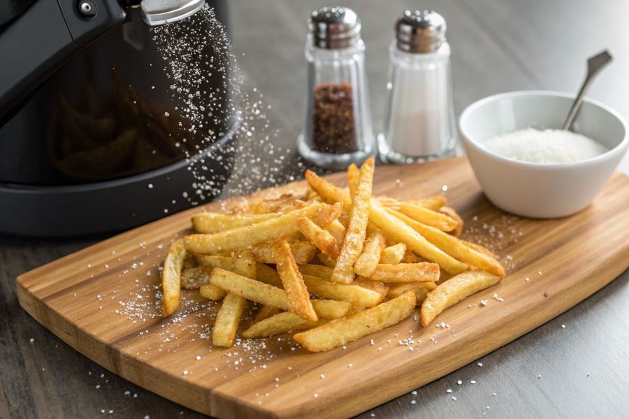 Pamiętaj, że najlepsze rezultaty osiągniesz, soląc frytki natychmiast po wyjęciu z frytkownicy, gdy są jeszcze gorące i lekko wilgotne od oleju. Wtedy sól najlepiej przylgnie do powierzchni, zapewniając równomierny i intensywny smak.