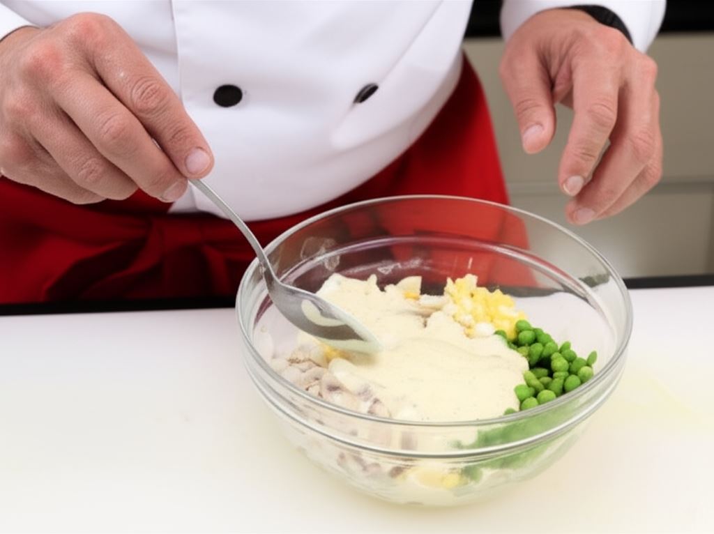 Krótkie sparzenie pieczarek we wrzącej wodzie przed dodaniem ich do sałatki to sekret, który sprawia, że zachowują one odpowiednią konsystencję i nie ciemnieją. Dzięki temu sałatka nie tylko smakuje wybornie, ale również zachwyca swoim wyglądem przez długi czas.