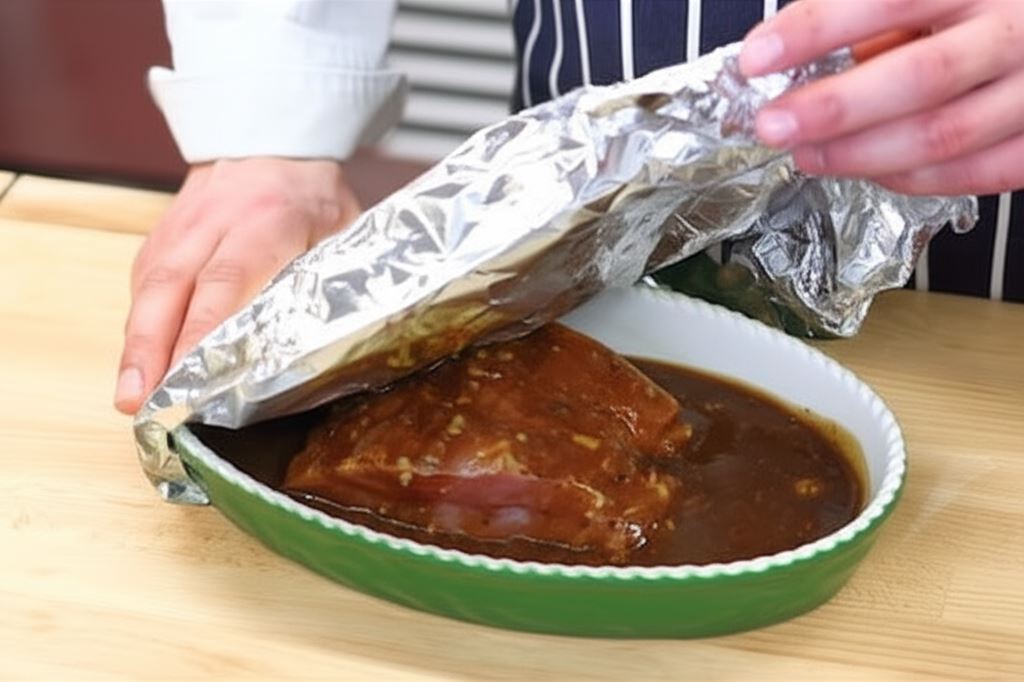Naczynie okryj folią aluminiową i piecz mięso w 160 °C przez godzinę. Serwuj na zimno pokrojone w cienkie plastry.