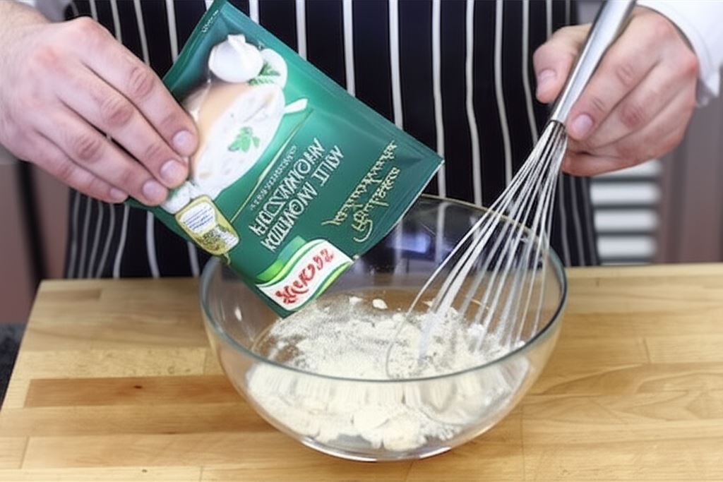 Zupę pieczarkową Knorr połącz z 500 ml wody i dodaj do garnka z cebulą. Wszystko starannie zamieszaj i gotuj przez około 5 minut.
