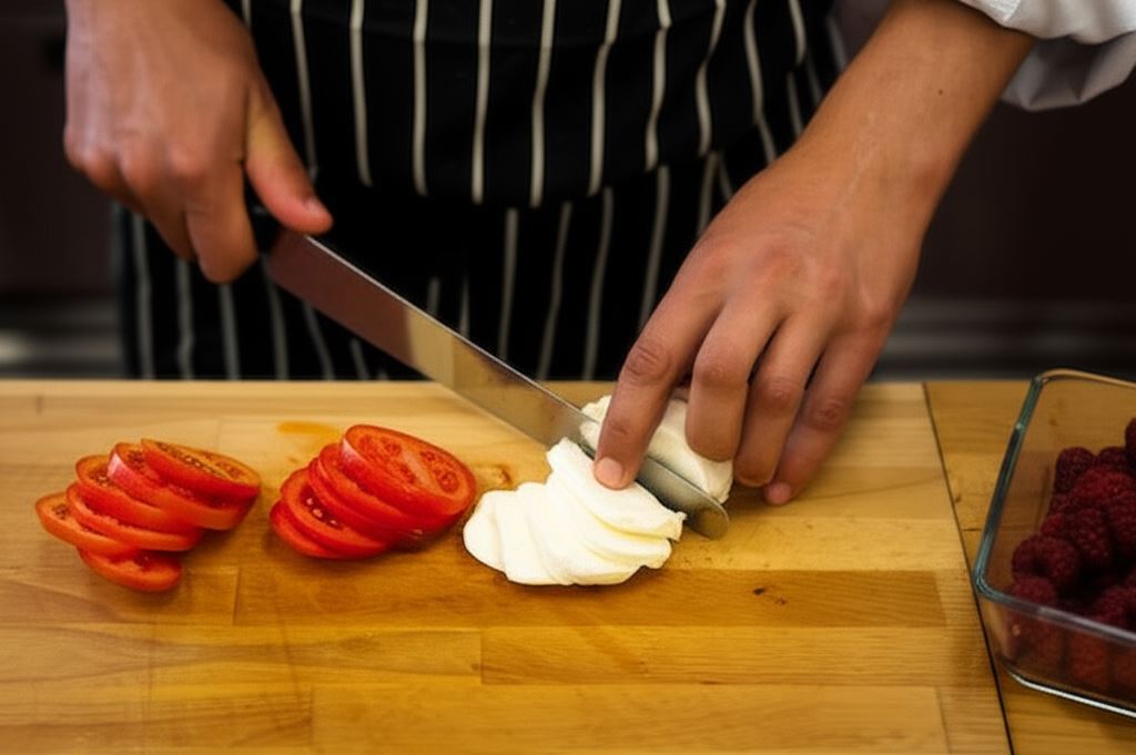 Caprese pochodzi z regionu Kampania w południowych Włoszech. Nazwa wywodzi się od wyspy Capri. Tradycyjnie składa się z pomidorów, mozzarelli i bazylii, które symbolizują kolory włoskiej flagi: czerwony, biały i zielony. Nasza wersja z malinami to twórcza interpretacja tego klasycznego dania.