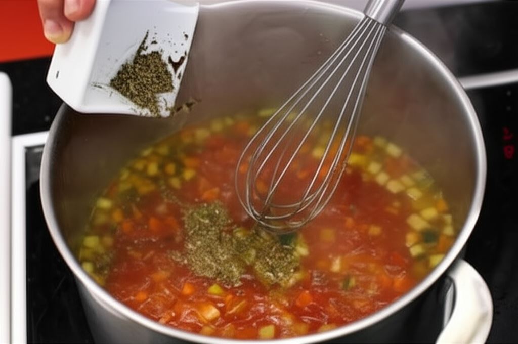 Wsyp przyprawy i gotuj zupę minestrone około 10 minut, do momentu gdy wszystkie warzywa będą miękkie.