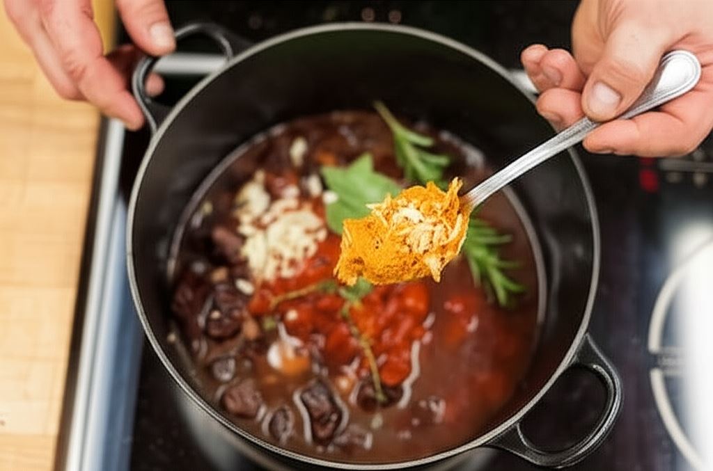 Wsyp przyprawy, siekany czosnek, pieprz, ziele angielskie, liść laurowy, rozmaryn, tymianek oraz Knorr Naturalnie smaczne. Nada potrawie właściwego aromatu oraz ulepszy konsystencję sosu.