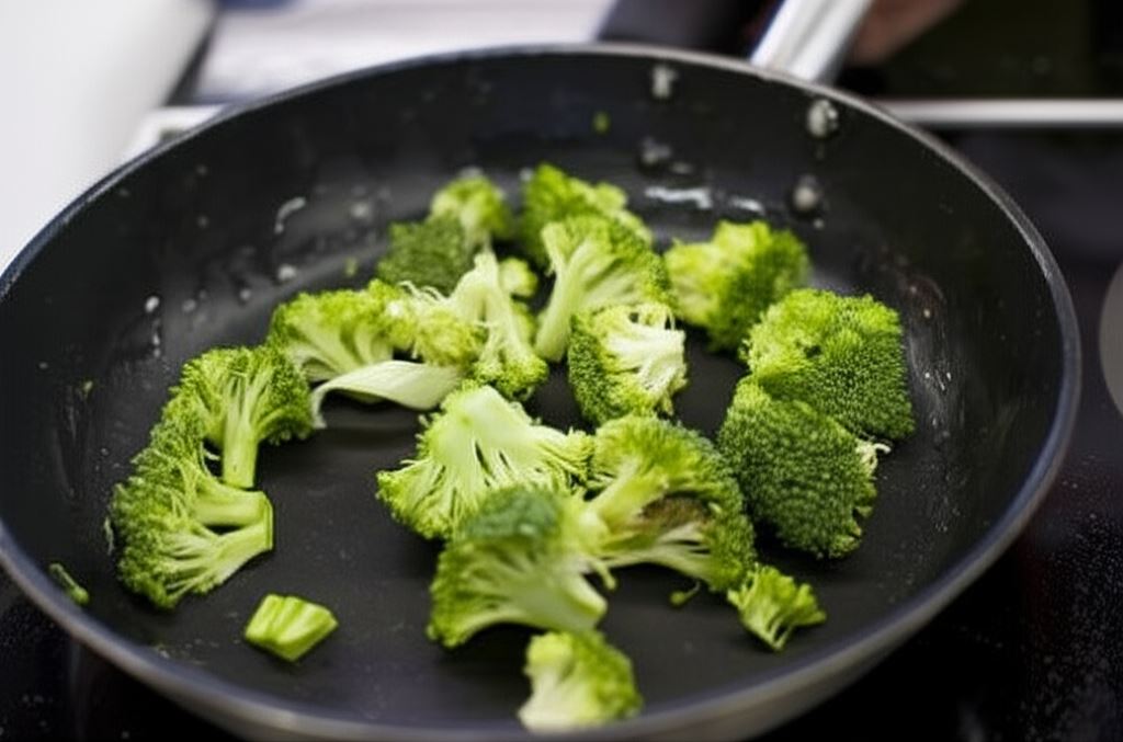Brokuły podziel na różyczki i podsmaż przez 2 minuty.