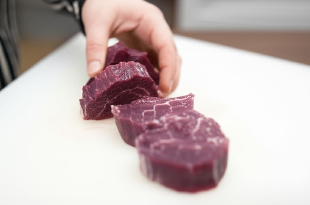 Mięso oczyść z błonek, potem pokrój na niewielkie steki po 10-12 dekagramów każdy.