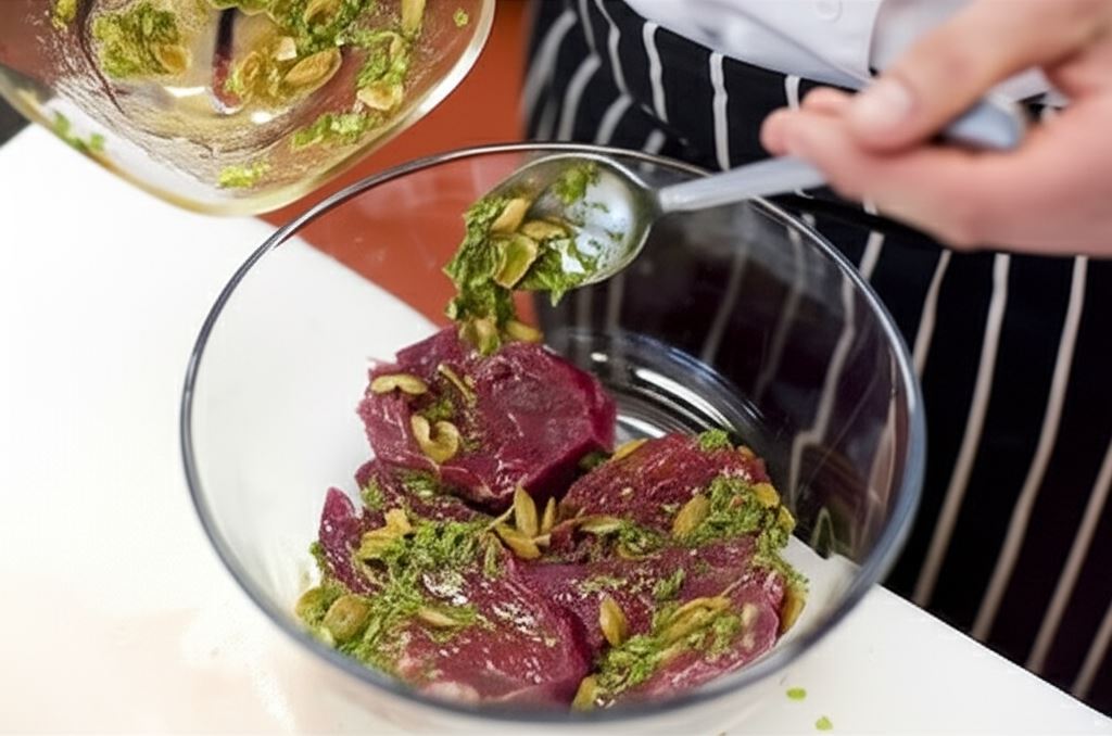 Mięso posmaruj marynatą i włóż na co najmniej dwie godziny do lodówki.