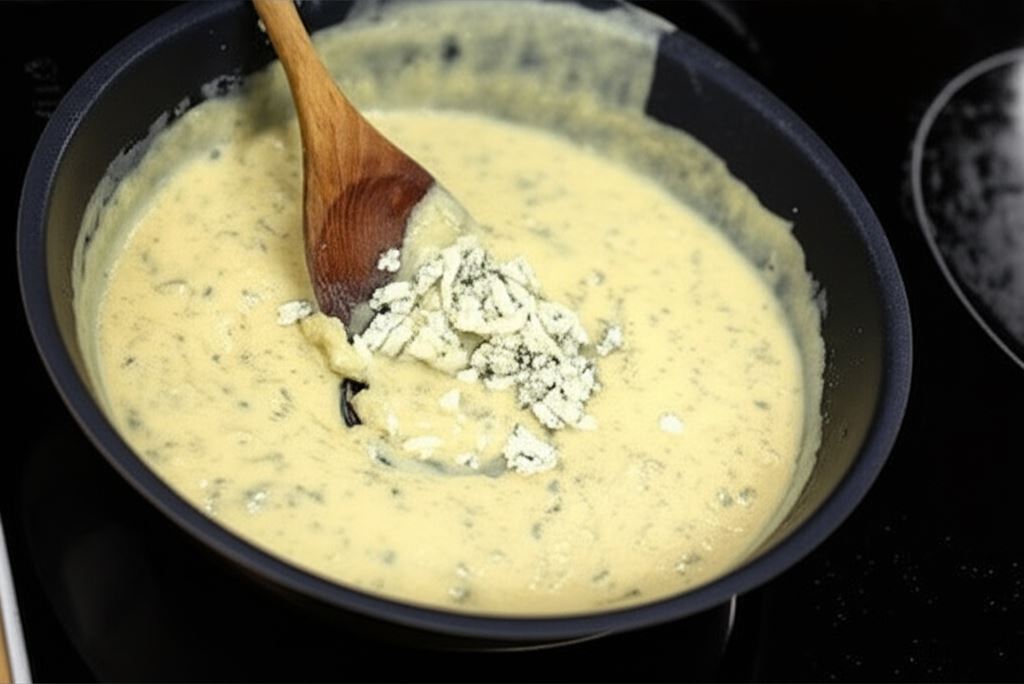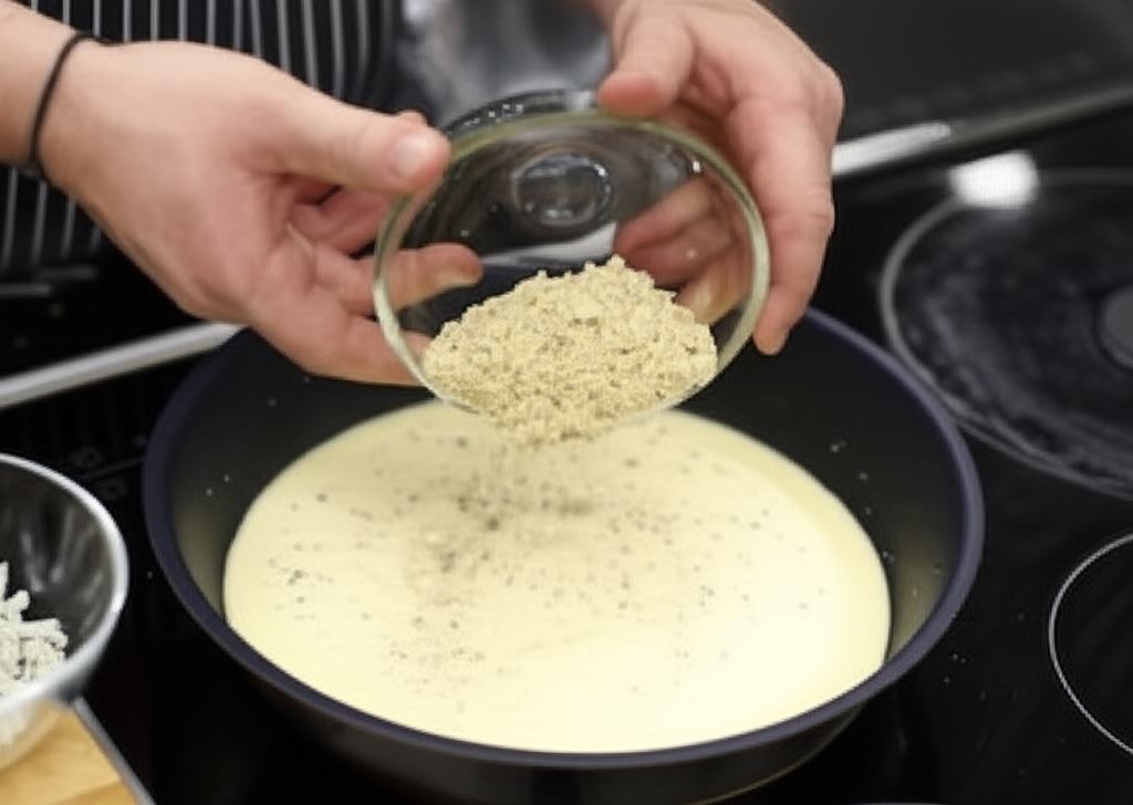 Kiedy sos się utworzy, wsyp starty ser. Całość gotuj jeszcze przez minutę.