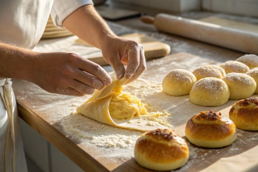 Formowanie i pieczenie drożdżówek z serem