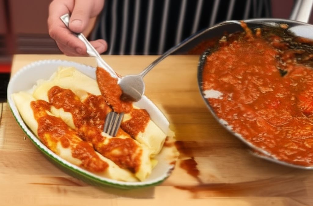 Delikatne naleśniki wypełnione kremowym farszem z trzech rodzajów sera, oblane aromatycznym sosem pomidorowym i zapieczone do złocistej perfekcji. To danie, które łączy w sobie prostotę przygotowania z wyrafinowanym smakiem. Cienkie, sprężyste placki skrywają w sobie aksamitne połączenie żółtego sera, mozzarelli i sera pleśniowego, tworząc harmonijną kompozycję, która rozpływa się w ustach z każdym kęsem.