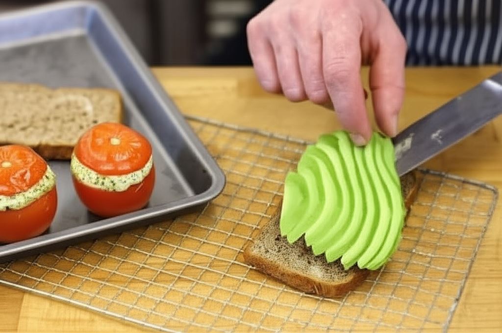 Soczyste pomidory wypełnione kremowym twarogiem z oliwkami, zapieczone do perfekcji i podane z chrupiącymi grzankami oraz awokado – brzmi kusząco, prawda? Ta prosta kompozycja smaków zachwyci każdego, kto szuka szybkiego, a jednocześnie pełnowartościowego posiłku. Delikatnie zapieczone pomidory w połączeniu z aromatycznym nadzieniem tworzą harmonijną całość, która rozpływa się w ustach.