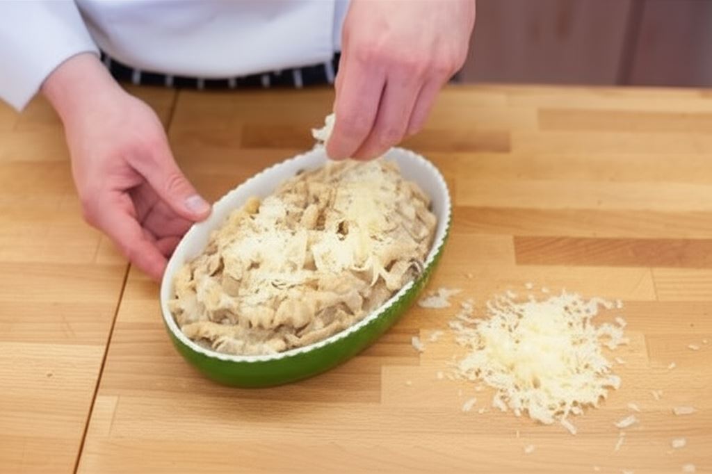 Makaron obsyp dojrzałym serem i zapiekaj w temperaturze 180 stopni przez 10 minut.