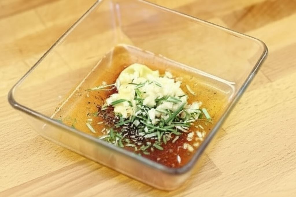 W miseczce połącz przyprawę Knorr, musztardę, olej, posiekany rozmaryn i czosnek oraz rozdrobnione w moździerzu ziarna ziela angielskiego.